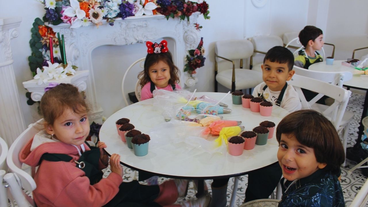 Doğal malzemelerle hazırlanan cupcake tabanlarını; renkli kremalar, çeşitli şekerlemeler ve süsleme aksesuarlarıyla yeniden yorumlayan öğrencilerimiz, hayal güçlerini tatlı tasarımlarıyla ortaya koydu.