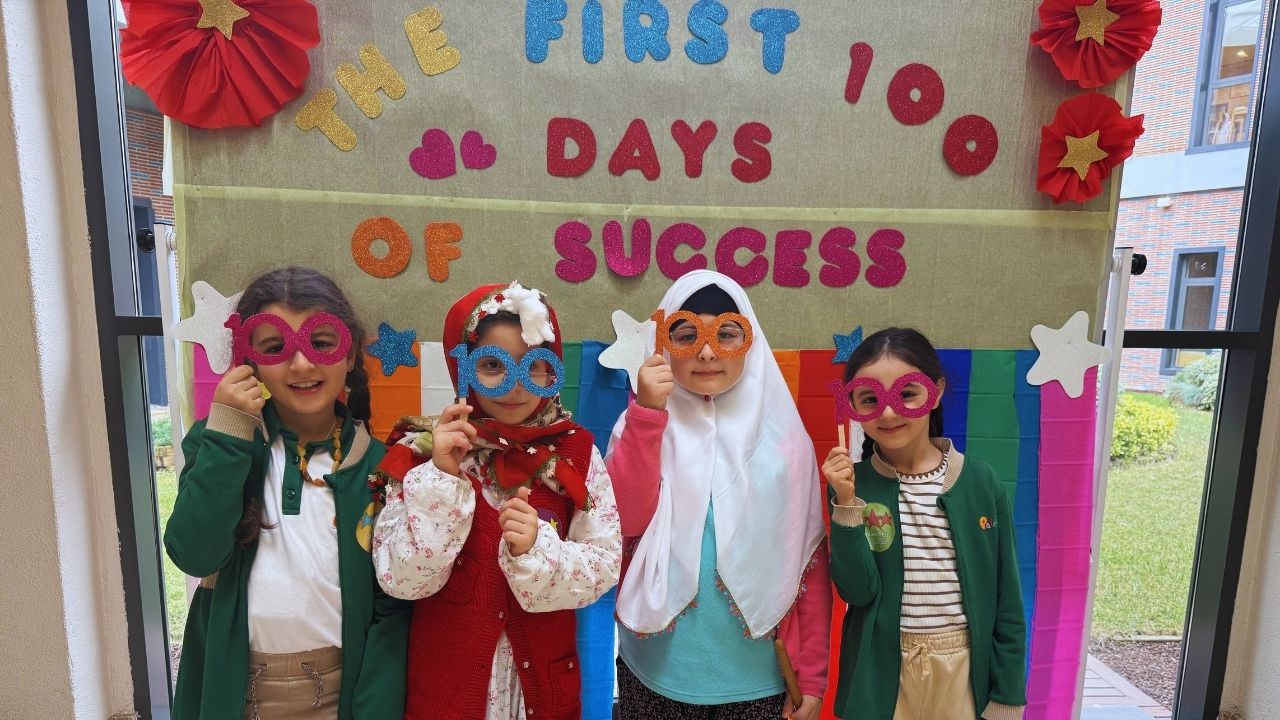 Eğitim döneminin 100. gününü büyük bir heyecanla kutladık. İlkokul öğrencilerimiz, “100th Days” kapsamında İngilizce derslerinde 100. gün konseptine uygun sayısal tasarımlar hazırlayarak öğrendiklerini somut çalışmalarla ortaya koydu. Hazırladıkları çalışmalar, kampüslerimizin koridorlarından sınıflarına kadar pek çok alanı adeta bir sergi ortamına dönüştürdü.