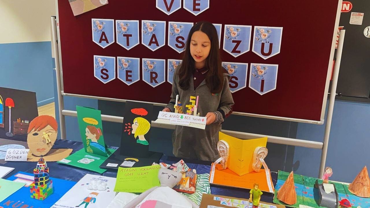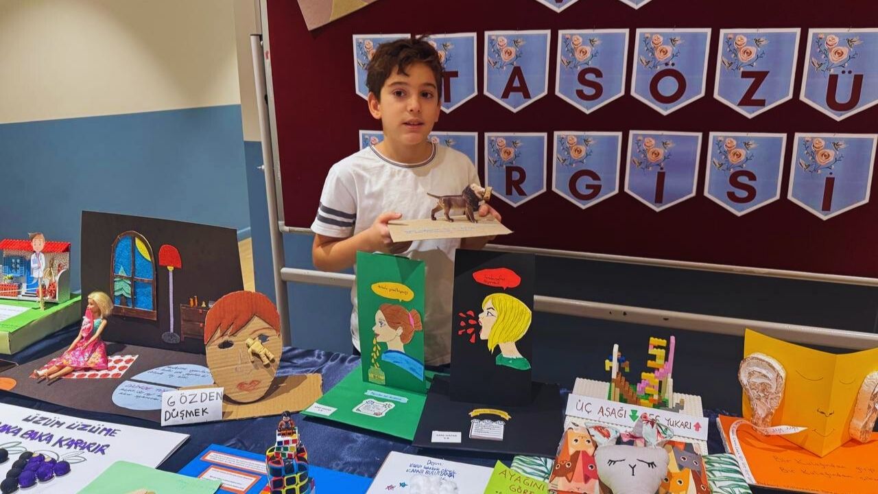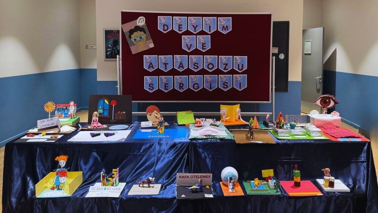 Sergimizde öğrencilerimiz, seçtikleri deyim ve atasözlerini kendi hazırladıkları maketlerle canlandırarak arkadaşlarına sundular. “Gözden düşmek”, “Deveye hendek atlatmak”, “Aslan yattığı yerden belli olur.” ve “Üzüm üzüme baka baka kararır.” gibi birçok ifade, öğrencilerimizin hayal gücü sayesinde yeniden hayat buldu. Karton, kil, maket malzemeleri ve çeşitli geri dönüşüm ürünlerini kullanarak hazırladığımız bu çalışmalar, sınıfımızda hem eğlenceli hem de öğretici bir atmosfer oluşturdu.